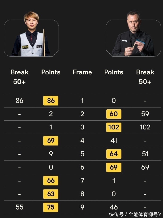 第七局,丁俊晖开球漏球,伯顿长台精确打进,1-0。可惜,母球扎进红球堆,反倒是给我方作念了一个斯诺克,他莫得解到,被罚7分。是非争夺中,伯顿以55-26胜出,4-2赢得赛点。